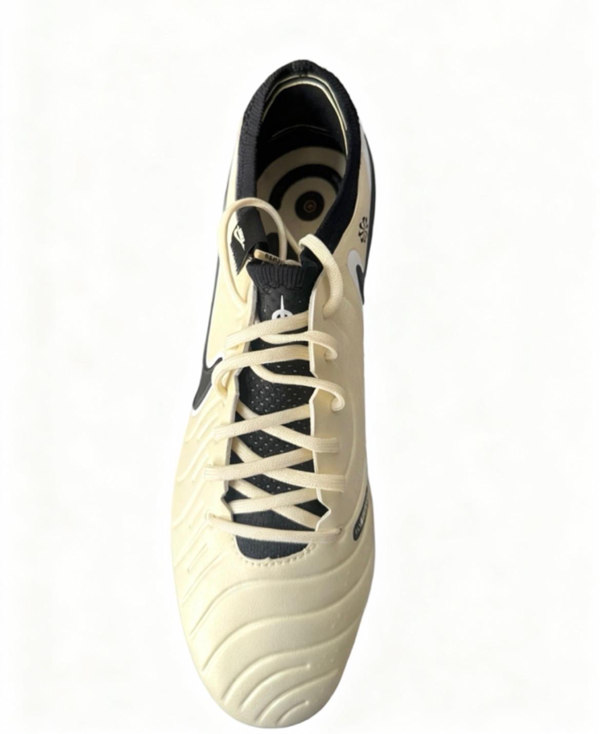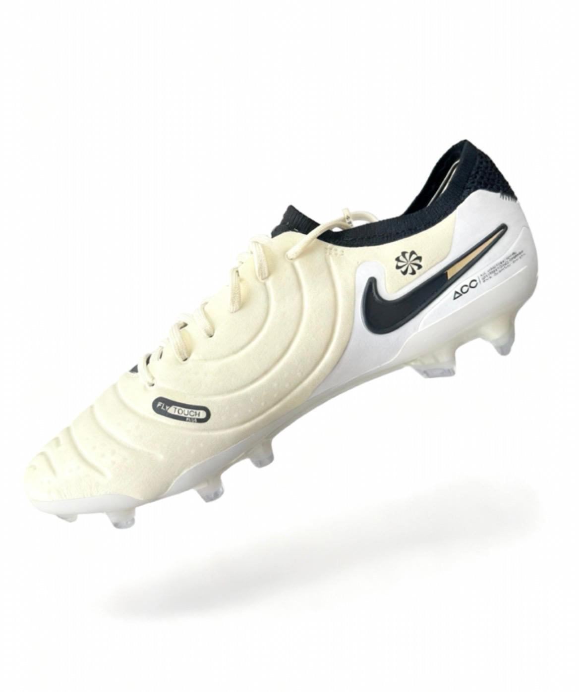 Modelo Nike Tiempo Legend 10 Elite FG (Firm Ground) Color Lemonade (crema/amarillo pálido), negro y detalles en Metallic Gold Coin. Material Superior Cuero sintético FlyTouch Plus, más suave que el cuero natural. Es ligero y no absorbe agua. Tecnología ACC Incluye tecnología All Conditions Control, que proporciona una textura adherente para un control óptimo del balón tanto en condiciones…