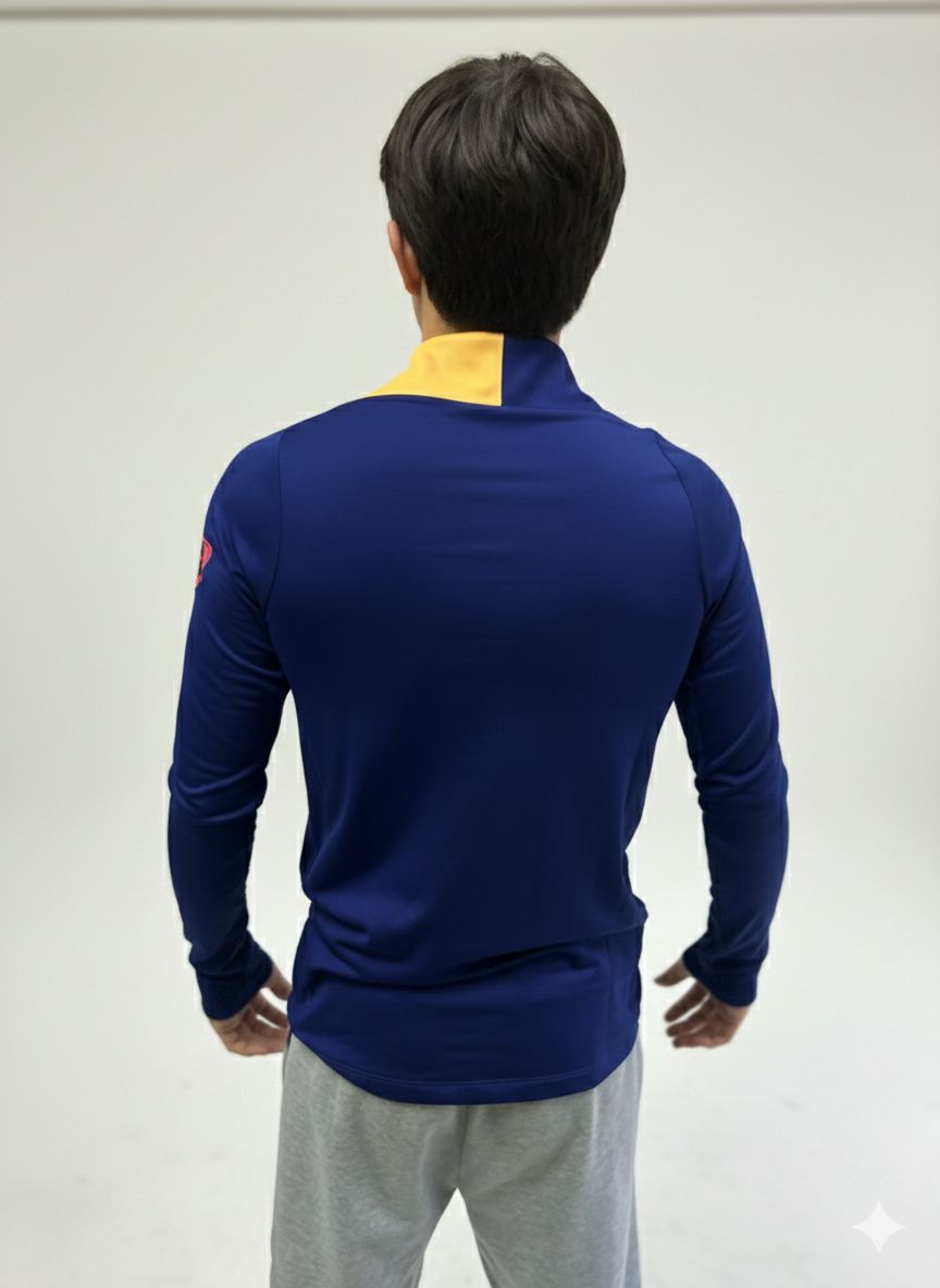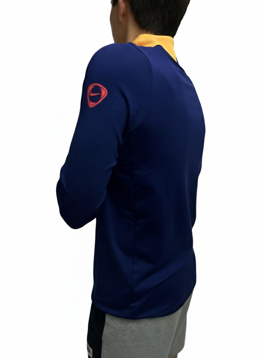 Sudadera Nike Azul Marino con Logo Rojo y Detalles Amarillos – Ropa Deportiva Hombre